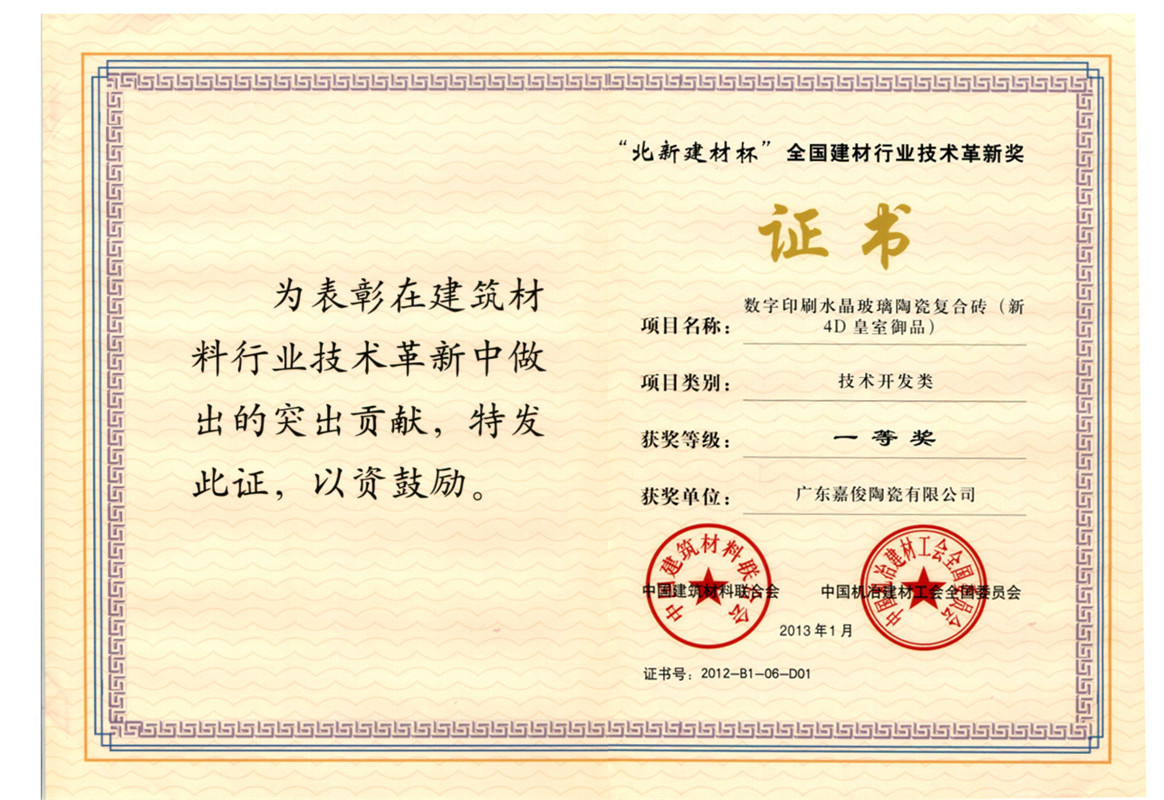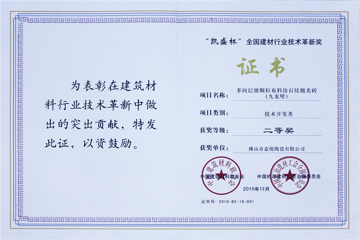 “宏宇杯”全國建材行業(yè)技術(shù)革新獎(jiǎng)二等獎(jiǎng)